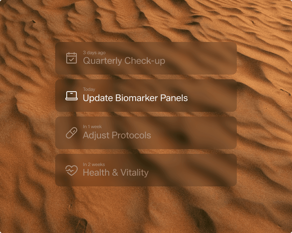 At Sela, we don't guess — we test. We start with a Wellness Exam to understand your health goals and current symptoms, paired with a comprehensive blood and hormone panel (100+ biomarkers) that gives us a complete picture of your health from the inside out. Every care plan is tailored to you: your body, your background, your lifestyle.